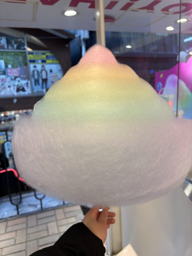 先日、原宿に行った際にレインボーわたあめを食べました!