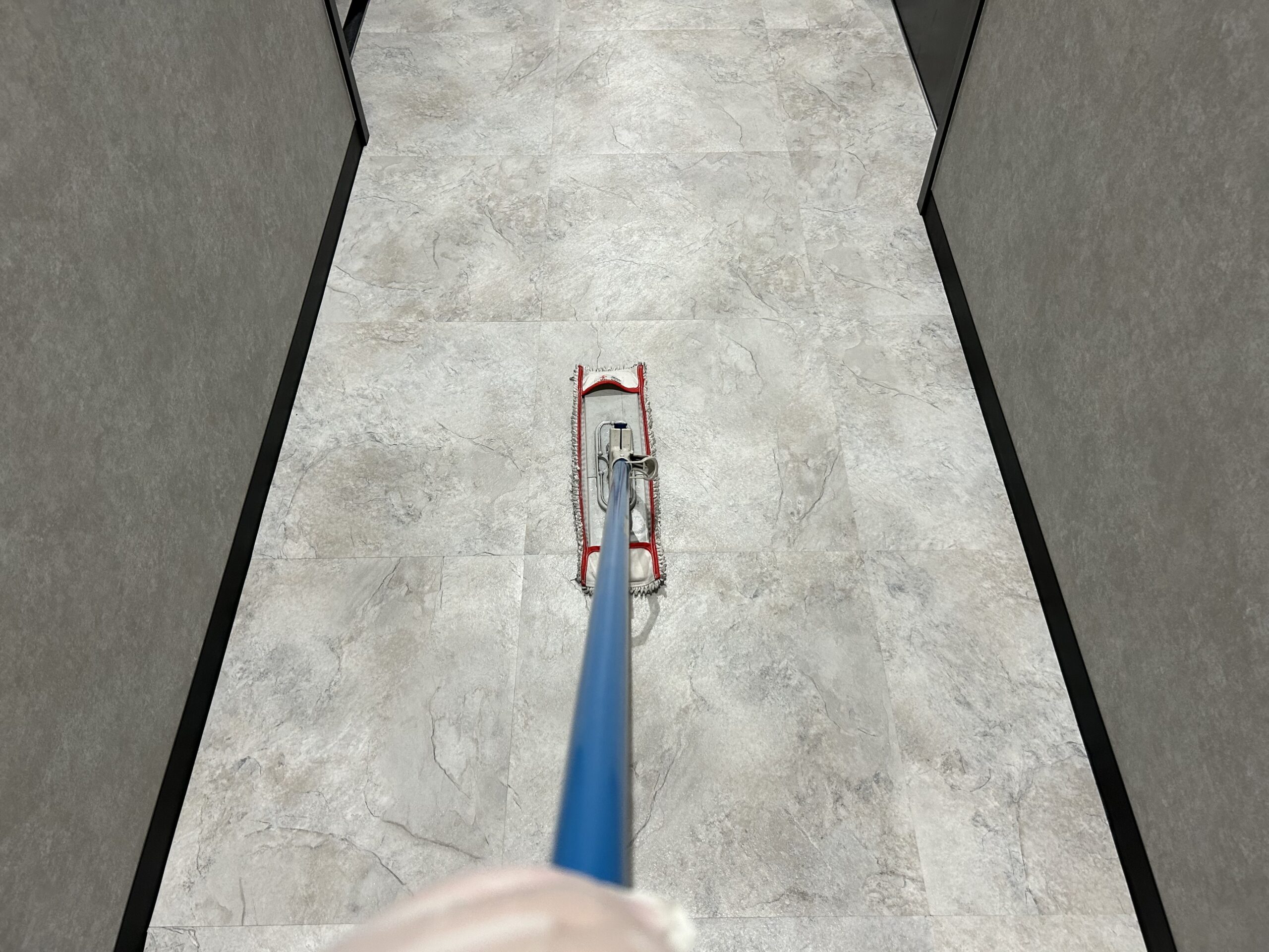 よく見ると靴汚れなどの汚れが多数あったのでしっかりと擦って汚れを落としていきます!