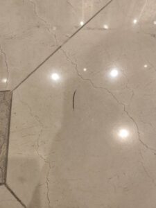 先日ホテルのエントランス清掃をした際にヒールマークが多かったので除去していました。