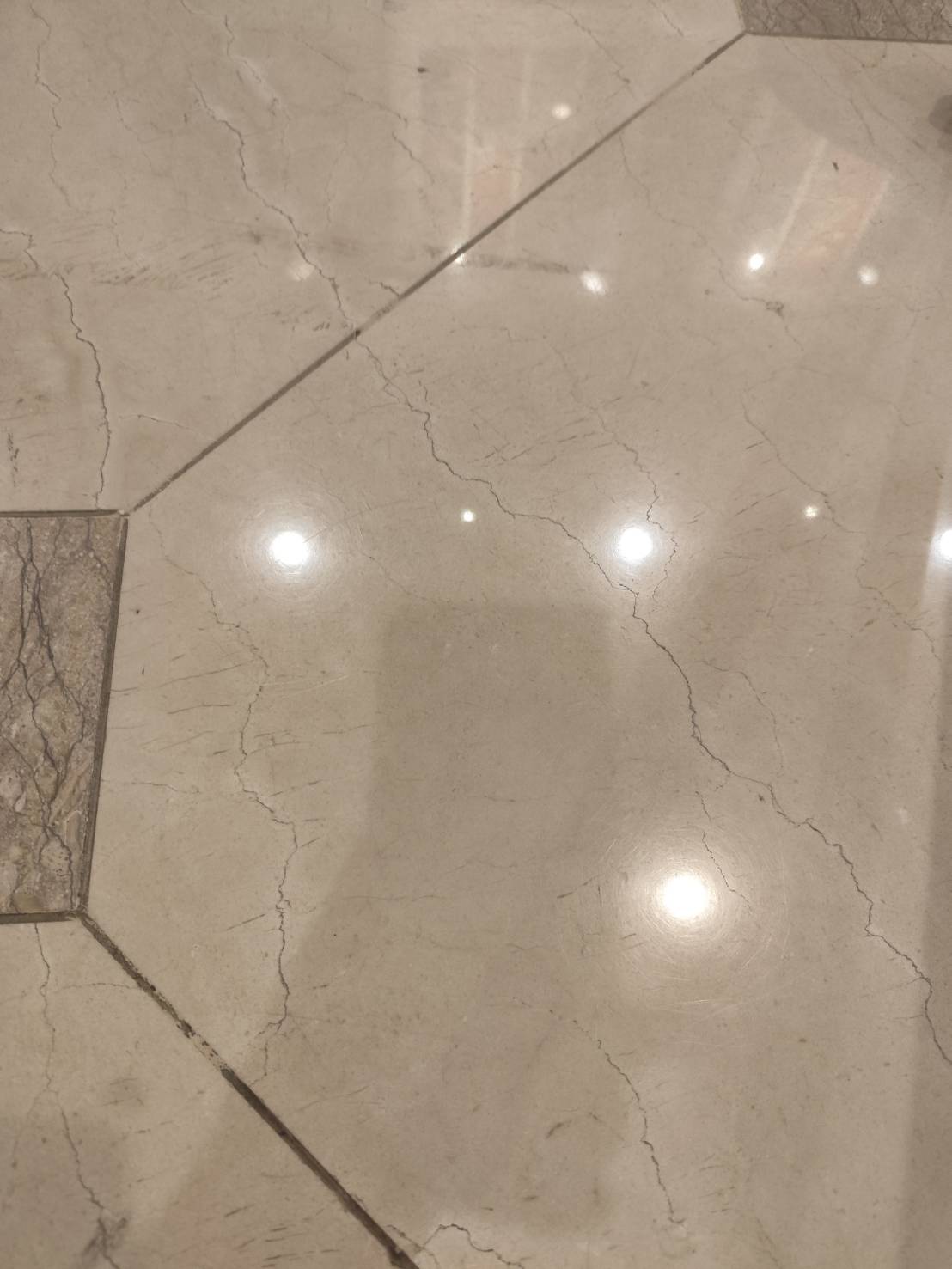 先日ホテルのエントランス清掃をした際にヒールマークが多かったので除去していました。