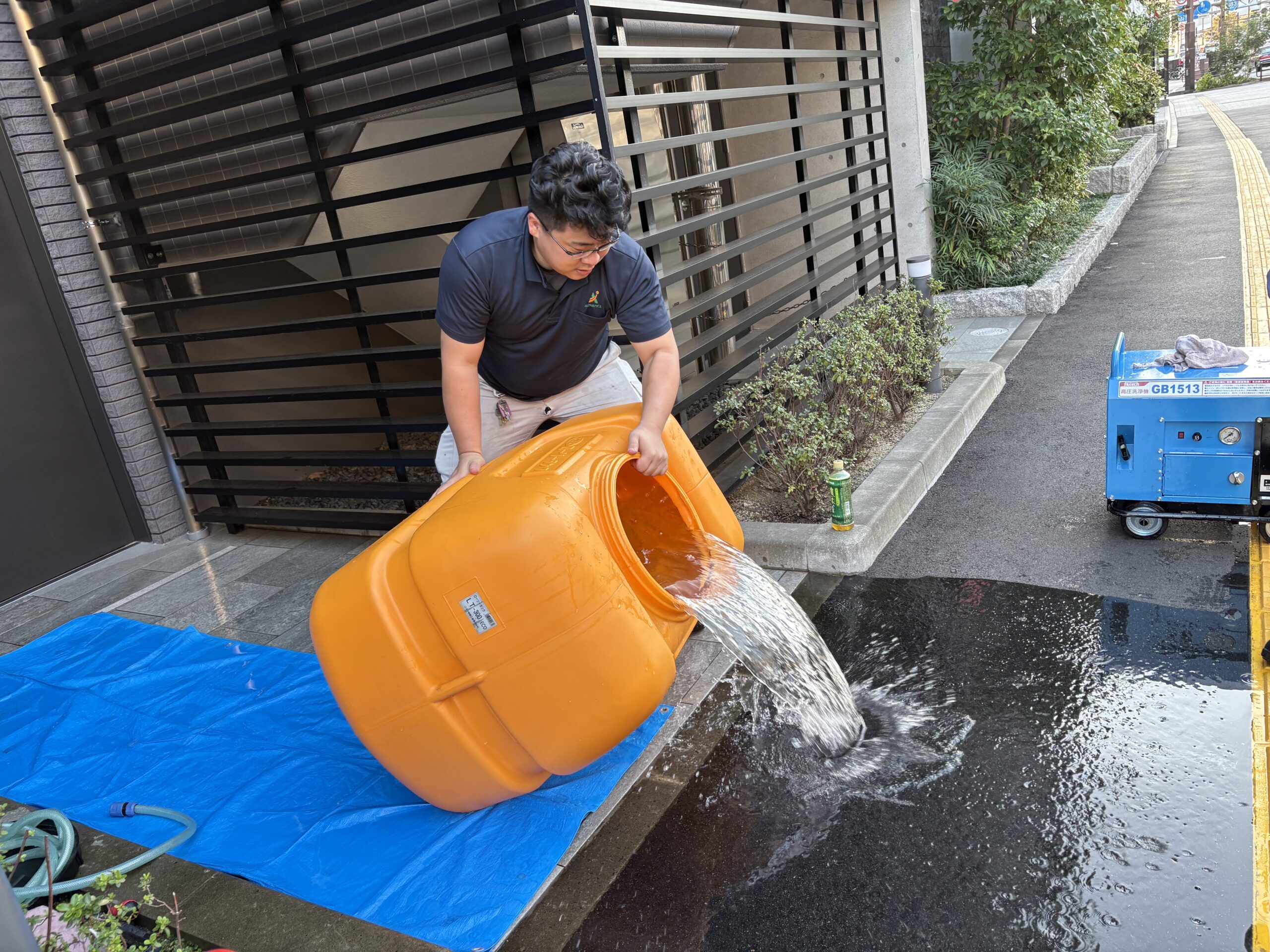 排水管清掃に他支店からクラッチさん、ダービーさんが応援に来てくださいました!