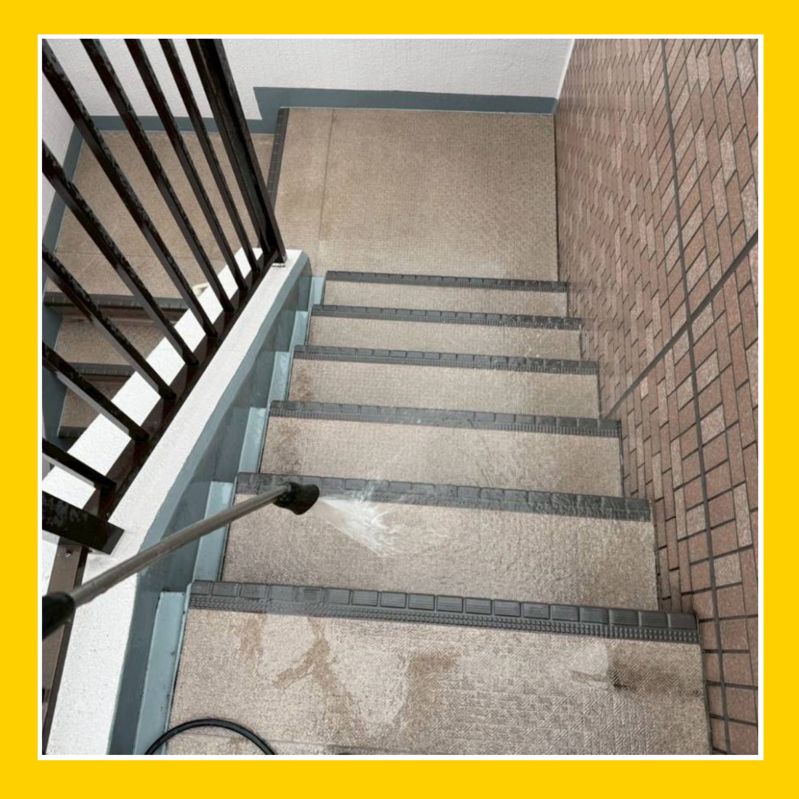 本日は、アパート共用部の階段を高圧洗浄機で清掃する様子をお届け!