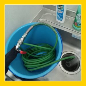細く柔軟なこのホースを配管の奥深くまで挿入し、高圧洗浄の力で内部を丸洗いします。ホースの先端から逆噴射される水圧で、こびりついた汚れを根こそぎかき出し、詰まりの予備軍を一掃します!