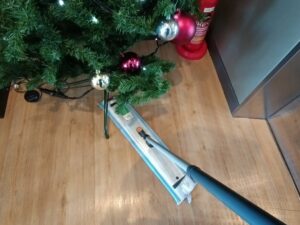 クリスマスツリーが飾られて綺麗ですが、その下は埃が溜まりやすいのでダスターでしっかり拭き上げます!