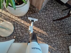 レストランはテーブル付近に食べかすが零れやすい為、次のお客様が気持ち良くご利用いただけるようにしっかり掃除機をかけます!