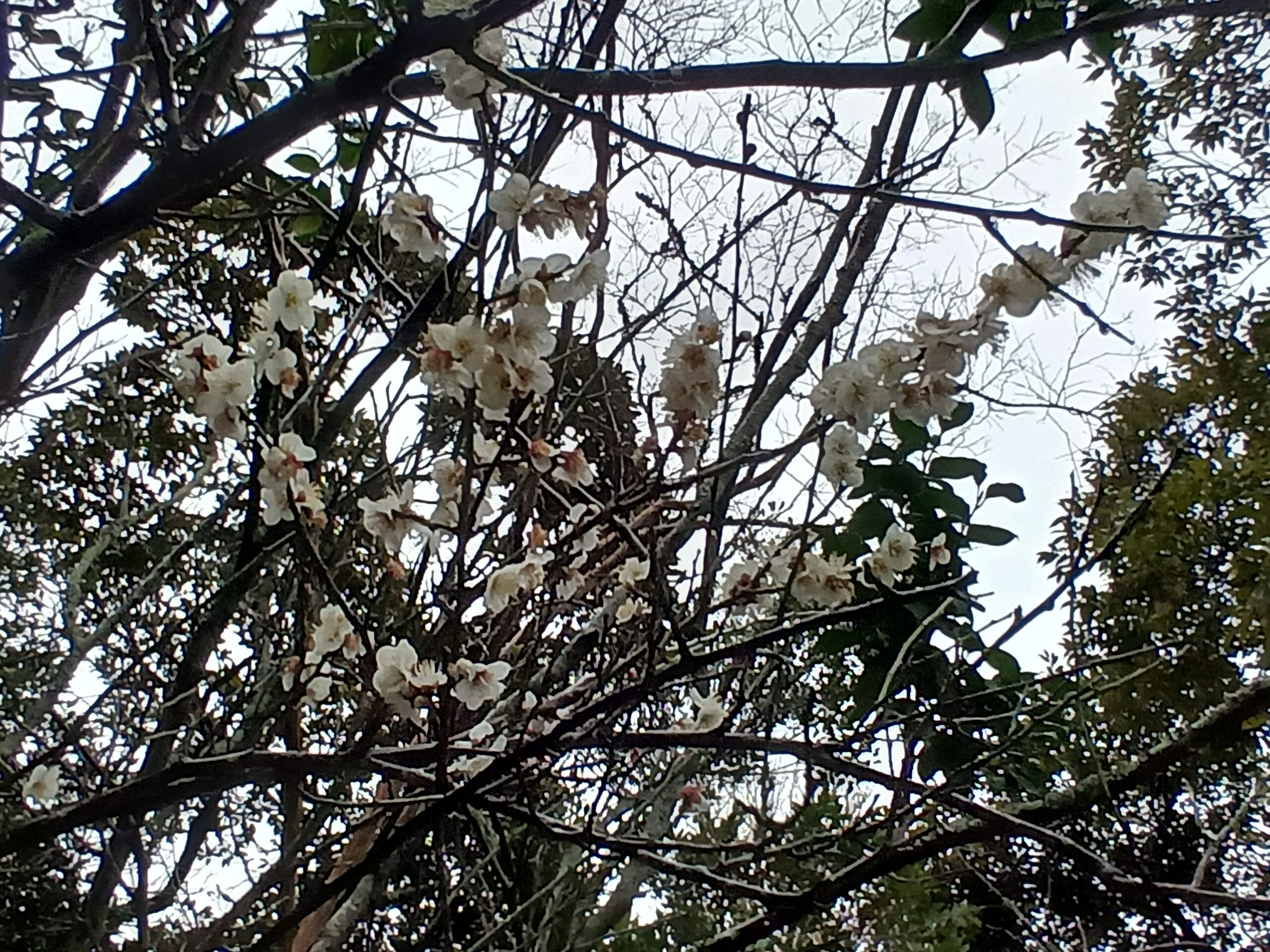 凍えるような天気の中、白い梅が咲いているのを見かけました。