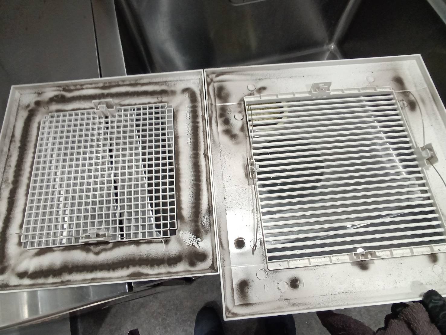 こんにちは!マウンテンチームプルです。先日換気扇の清掃を行いました。外観からは見えませんが汚れがたまる箇所になりますので内部まで綺麗に清掃いたします!